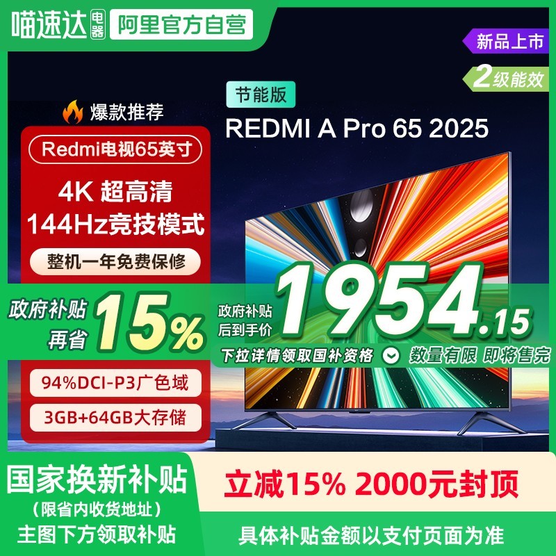 本文属于原创文章,如若转载,请注明来源:小米REDMI A Pro65英寸电视144Hz高刷智能大屏限时特惠https://tv.zol.com.cn/1026/10260754.html