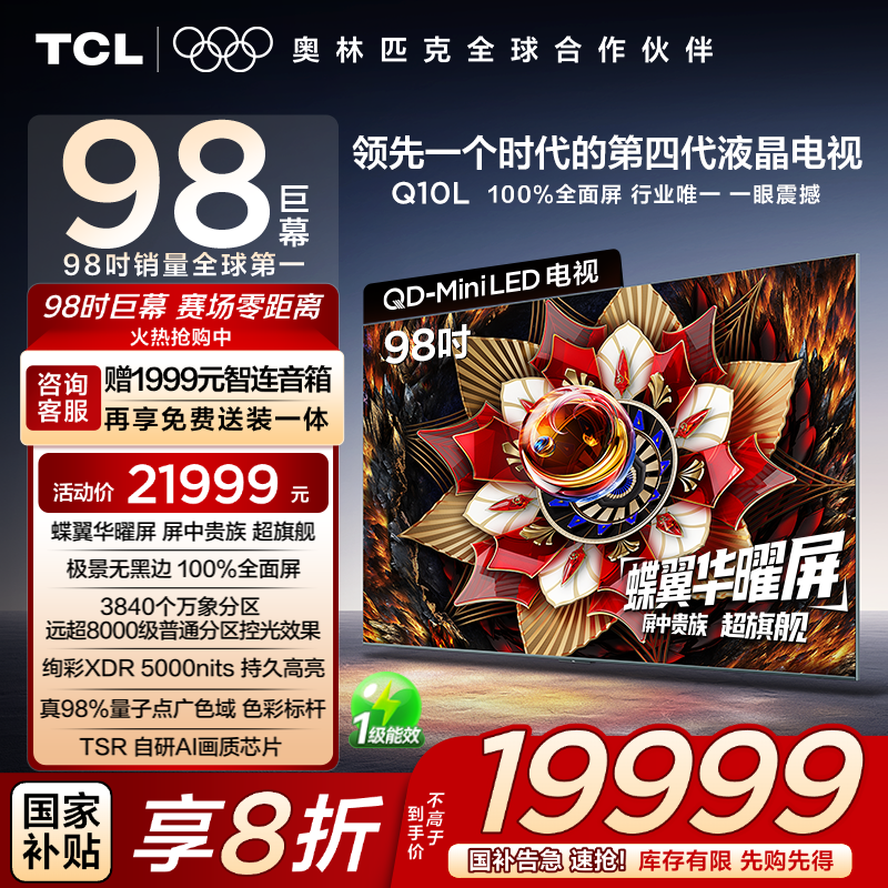 本文属于原创文章,如若转载,请注明来源:TCL 98Q10L巨屏电视限时特惠19999元https://tv.zol.com.cn/1033/10332310.html