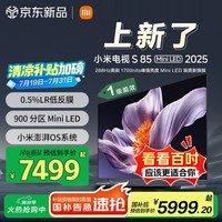 小米Xiaomi电视S85 Mini LED 2025款85英寸大屏家用智能电视搭载高端Mini LED显示技术带来288Hz高刷新率与1700nits超高亮度配备低反光屏幕设计无论是强光环境还是夜晚观影都能呈现清晰细腻的画质表现色彩更真实视野更沉浸现在购买享受超值促销价格原价7499元参与活动满2000元8折再叠加补贴20%起减1424.81元双重优惠后实际到手价仅需4799.36元性价比大幅提升快来抢购这款画质与性能兼具的大屏电视让你的家庭影院升级一步到位