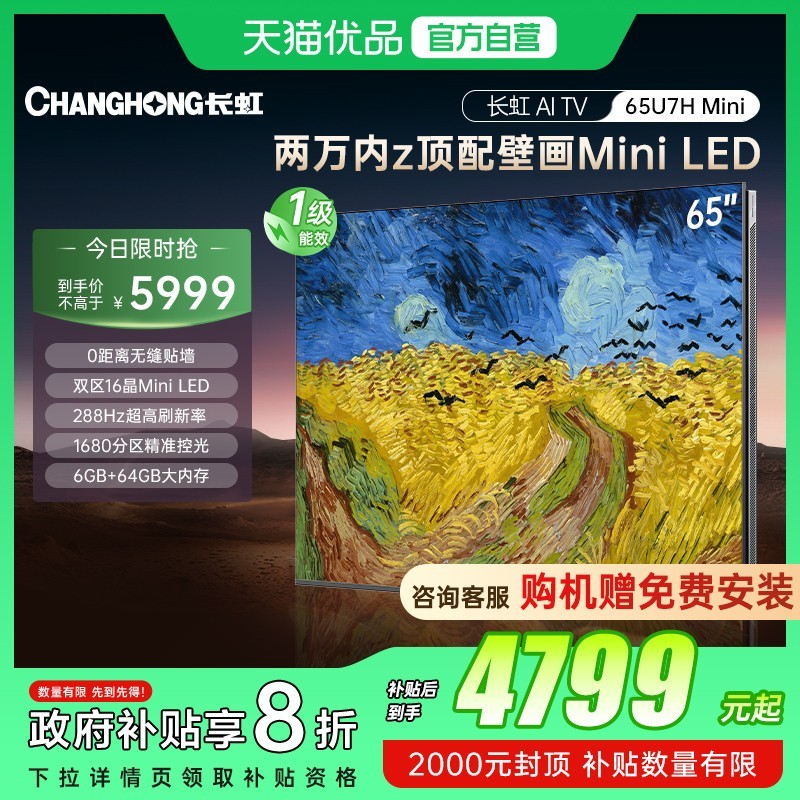 本文属于原创文章,如若转载,请注明来源:长虹65U7H Mini电视直降,咨询客服赠锅https://tv.zol.com.cn/1044/10443441.html