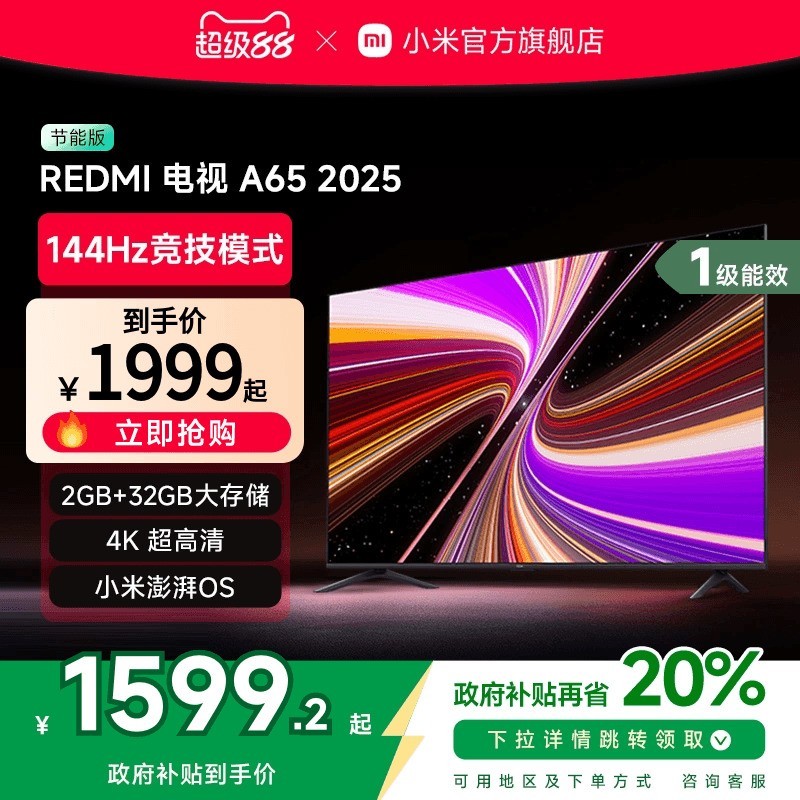 本文属于原创文章,如若转载,请注明来源:小米 Redmi A65 电视促销,到手仅 1599.2 元https://tv.zol.com.cn/1044/10446698.html