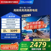 雷鸟 FFALCON 鹏6 24款 75S377C-JN 液晶电视 75英寸大屏4K超高清画质带来震撼视觉体验,采用高性能液晶面板与智能图像处理技术,色彩还原更真实细节更清晰,支持多种音视频格式满足家庭娱乐多样化需求,外观设计简约大气完美融入现代家居环境,目前京东自营售价2899元,PLUS会员享9.96折叠加政府补贴20%后实付仅2309.92元,创历史低价纪录,性价比出众,有需求的朋友可放心入手。