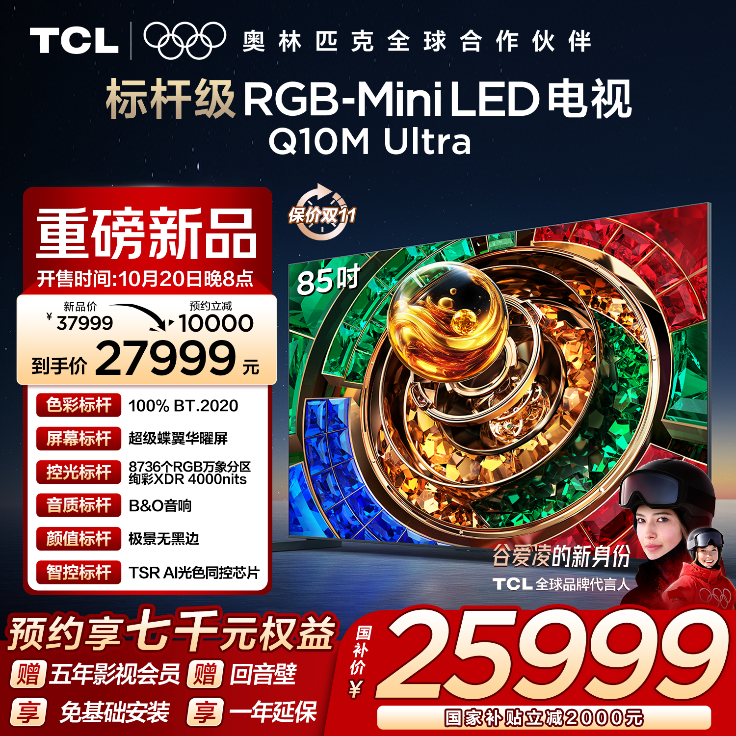 TCL 85Q10M Ultra 85英寸电视震撼上市,搭载先进的RGB-Mini LED技术和超级蝶翼华曜屏,带来极致对比度与真实色彩表现,画面细腻通透,明暗层次分明,无论是观影还是游戏都能享受影院级视觉盛宴。支持全阵列局部调光和高刷新率,配合杜比视界和HDR10+认证,细节分毫毕现。