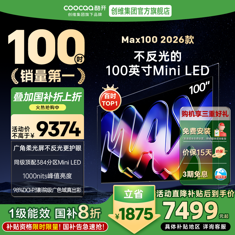 酷开创维酷开Max100英寸26款高刷大内存MiniLED电视震撼来袭,超大百吋屏幕带来影院级视觉享受,采用先进MiniLED显示技术,画面更细腻亮暗层次分明,支持高刷新率畅享丝滑流畅的观影与游戏体验,搭配大容量存储轻松运行各类应用,智能系统操作更便捷。
