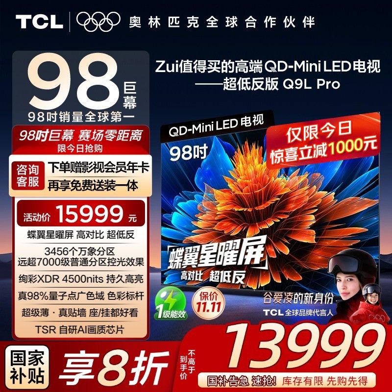 本文属于原创文章,如若转载,请注明来源:TCL 98Q9L Pro 98 英寸电视低至 13999 元https://tv.zol.com.cn/1052/10526954.html