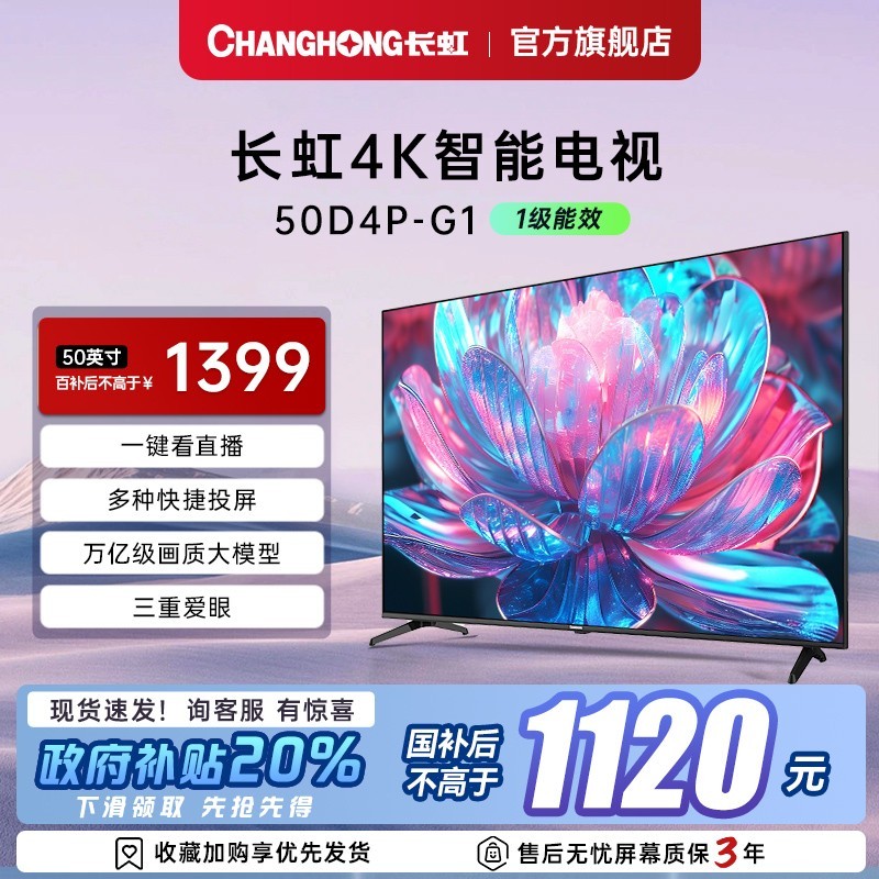长虹电视50D4P - G1,一款50英寸的智能网络4K高清HDR电视机,采用无边全面屏设计,实现了平板液晶LED显示,拥有超高清画质,还支持手机投屏功能。