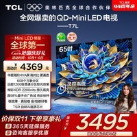 TCL 65T7L 65英寸4K液晶电视,超清大屏震撼视界,搭载4K HDR显示技术,画质细腻色彩真实,支持MEMC运动补偿,画面流畅不拖影,畅享影院级观影体验。内置AI智能语音系统,语音操控便捷高效,轻松切换频道、查询信息。全面屏设计搭配金属超薄机身,现代感十足,轻松融入各种家居风格。