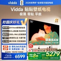 想换一台大屏电视的朋友看过来!Vidda贴贴壁纸电视75V7Q,屏幕达75英寸,采用了300Hz高刷MiniLED技术,能带来流畅清晰的视觉体验。它拥有29.9mm超薄机身,还有极黑低反屏,平嵌的设计更是让电视与墙面完美融合,整体美观又大气。在京东平台,这款电视目前活动售价6599元,辽宁地区参与满1元打8折(其他地区自测),下单立减26.4元,还能享受满5000减500元优惠,以旧换新补贴10元,补贴20%起减1055.84元。
