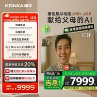 康佳100G10 100英寸易AI电视机现于京东开启促销活动。这款电视搭载惊鸿AI画质芯片,拥有低反屏,采用MiniLED 576分区技术,是一款液晶智能平板电视。