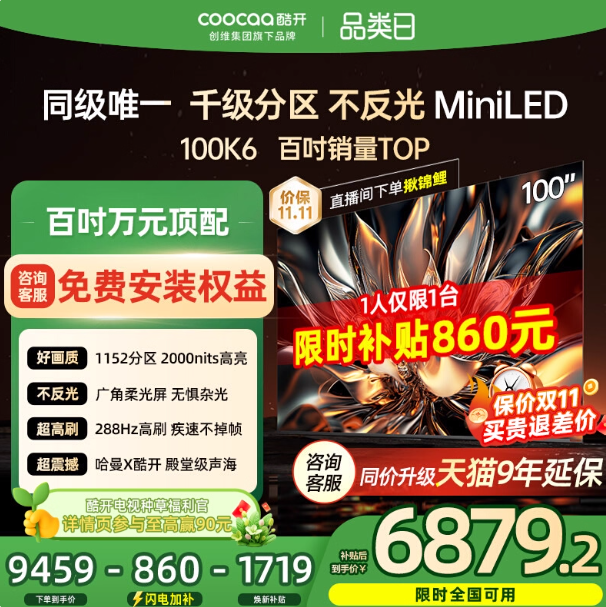 本文属于原创文章,如若转载,请注明来源:酷开创维K6 100英寸电视直降享低价https://tv.zol.com.cn/1060/10604825.html