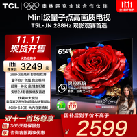 TCL 65T5L-JN 65英寸QLED量子点电视,288Hz高刷新率搭配deepseek AI智能系统,带来流畅顺滑的视觉体验与智慧便捷的操作享受,超薄设计轻松融入各种家居风格,65英寸大屏视野开阔,色彩更真实,画质更清晰,无论是观影、游戏还是追剧都能沉浸其中。