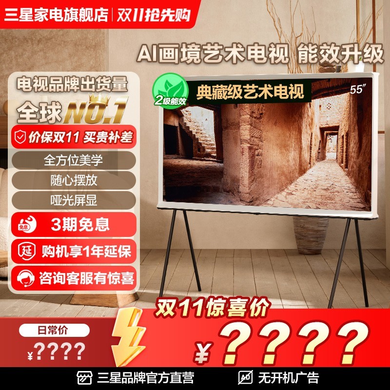 三星55LS01DB 55英寸QLED 4K AI画境艺术电视现迎来超值优惠,活动售价10999元,下单可领取满400减200元优惠券,并参与满10999减3600元大促活动,叠加国补15%后,实付仅需6119.15元,更有1元预约抢100元猫超卡福利,性价比出众,不容错过。这款电视采用哑光屏显设计,有效减少环境光反射,让画面更清晰自然,搭配可拆式落地支架,轻松适配客厅、卧室等多种空间布局。搭载三星量子点技术,通过纳米级量子点呈现广色域色彩,在不同亮度下都能展现丰富细腻的视觉效果。支持HDR10+动态优化技术,逐帧分析场景并智能调节亮度,提升对比度与细节表现。内置升级版应用市场,聚合芒果TV、云视听极光、酷喵影视、银河奇异果等主流影音平台,内容资源丰富。支持NFC一碰传功能,只需将手机轻触电视顶部即可实现音频无线传输,便捷高效。配备4个HDMI接口及USB、光纤音频输出、LAN网络端口等齐全接口,满足游戏、影音、智能家居等多场景连接需求,是集美学、音画质与智能体验于一体的高品质家庭娱乐中心。