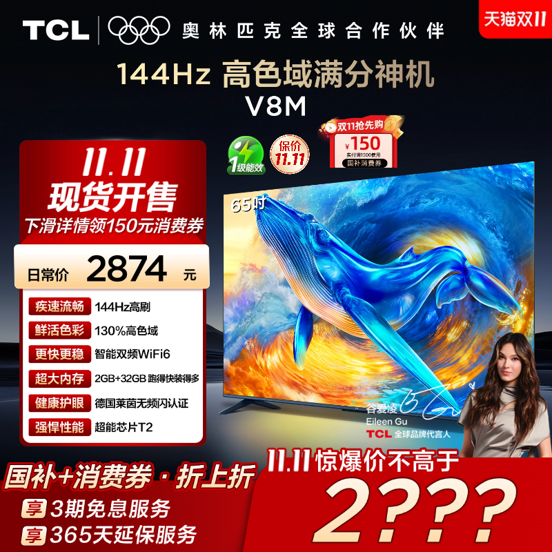 本文属于原创文章,如若转载,请注明来源:TCL 65V8M 电视直降,到手仅 2299.2 元https://tv.zol.com.cn/1064/10644183.html