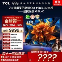 想换一台大屏高清电视的朋友有福啦!TCL 85Q9L - C 液晶电视,拥有 85 英寸超大屏幕,能带来沉浸式观影体验,还具备 4K 分辨率,画面清晰逼真,细节尽显。这款电视在京东平台有超给力的活动,目前活动售价 9999 元,黑龙江地区活动售价 8999 元。现在下单可领取满 4000 减 1000 元优惠券,plus 会员还能立减 36 元,以旧换新有 10 元补贴,还有国家 20%的补贴。