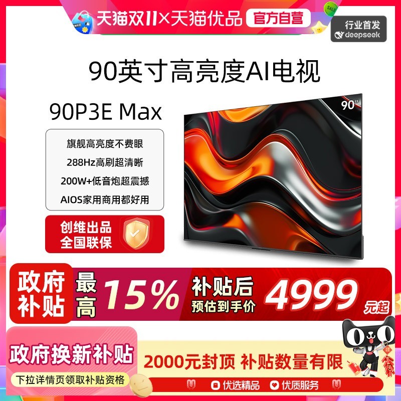 酷开创维酷开K3 Pro 2025款90英寸高亮度超大屏AI平板电视90P3E Max,拥有90英寸的超大屏幕,能带来震撼的视觉体验,并且具备高亮度的显示效果,画面清晰亮丽。同时它搭载AI功能,让使用更加智能便捷。这款电视在天猫精选目前活动售价6999元,下单可领取5000 - 500元88VIP家电消费券优惠券,还能参与满6999元减1366元、店铺首页直播间专享减483.65元、15%起减844.95元的优惠活动。