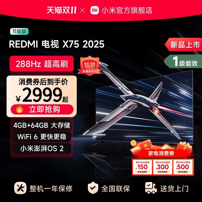 红米L75RB-RXE节能版电视75英寸4K标配版现正迎来超值优惠,原价5499元的高品质大屏电视,在天猫精选活动期间叠加多重补贴后实付低至2239.2元,省钱力度惊人。该电视采用75英寸超大屏幕,支持4K超高清分辨率,画质清晰细腻,色彩还原真实,搭配节能技术,长时间使用也更省电。无论是观影、追剧还是游戏娱乐,都能带来沉浸式的视听体验。此次享受百亿补贴2250元,闪电加补150元,叠加88vip满3000减300消费券,再享补贴活动20%起减559.8元,多重优惠层层直降,到手价仅2239.2元,机会难得,速抢不容错过。