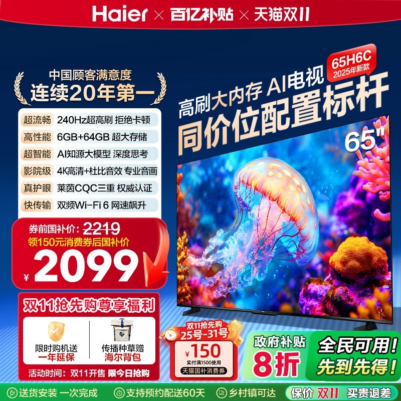 本文属于原创文章,如若转载,请注明来源:海尔65H6C电视2099元起https://tv.zol.com.cn/1077/10776649.html