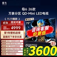 雷鸟 FFALCON 鹤6 26款 75R69A 液晶电视,拥有75英寸大屏,具备4K分辨率,能带来清晰、震撼的视觉体验。目前雷鸟旗舰店直播间售价5394元,首购可享662元礼金,还能领取9折优惠券和400元补贴券,另外还有国补10%。