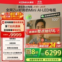 康佳推出的100G10 100英寸易AI电视机值得关注。这款电视搭载惊鸿AI画质芯片,拥有低反屏,采用MiniLED 576分区技术,属于液晶智能平板电视。
