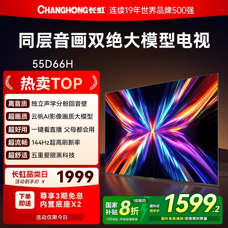 本文属于原创文章,如若转载,请注明来源:长虹55D6电视1599元抢https://tv.zol.com.cn/1080/10802100.html