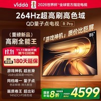 Vidda R Pro 85英寸海信电视85VR1Q-PRO震撼来袭,超大屏幕带来影院级视觉享受,4K超高清分辨率搭配高刷新率,画面流畅细腻,无论是观影、游戏还是体育赛事都能畅快体验,搭载专业级音响系统,声临其境,智能系统操作流畅,支持多种投屏方式,轻松连接手机平板,打造智慧家庭娱乐中心。