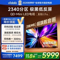 Vidda发现X Pro 2026款 75英寸电视 300Hz超高刷低反屏 2340分区QD-Mini LED 以旧换新 75VX5Q-PRO 75英寸 VX5Q-PRO【国家补贴20%】