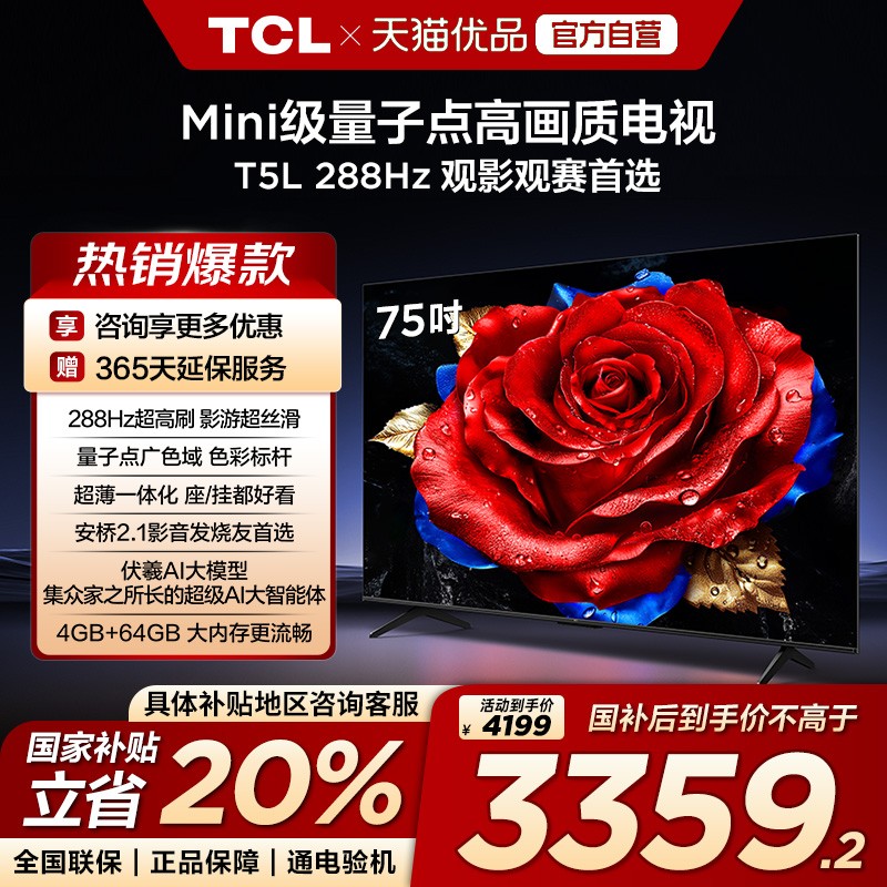 本文属于原创文章,如若转载,请注明来源:TCL 75英寸75T5L电视直降,低至3359元https://tv.zol.com.cn/1087/10874889.html