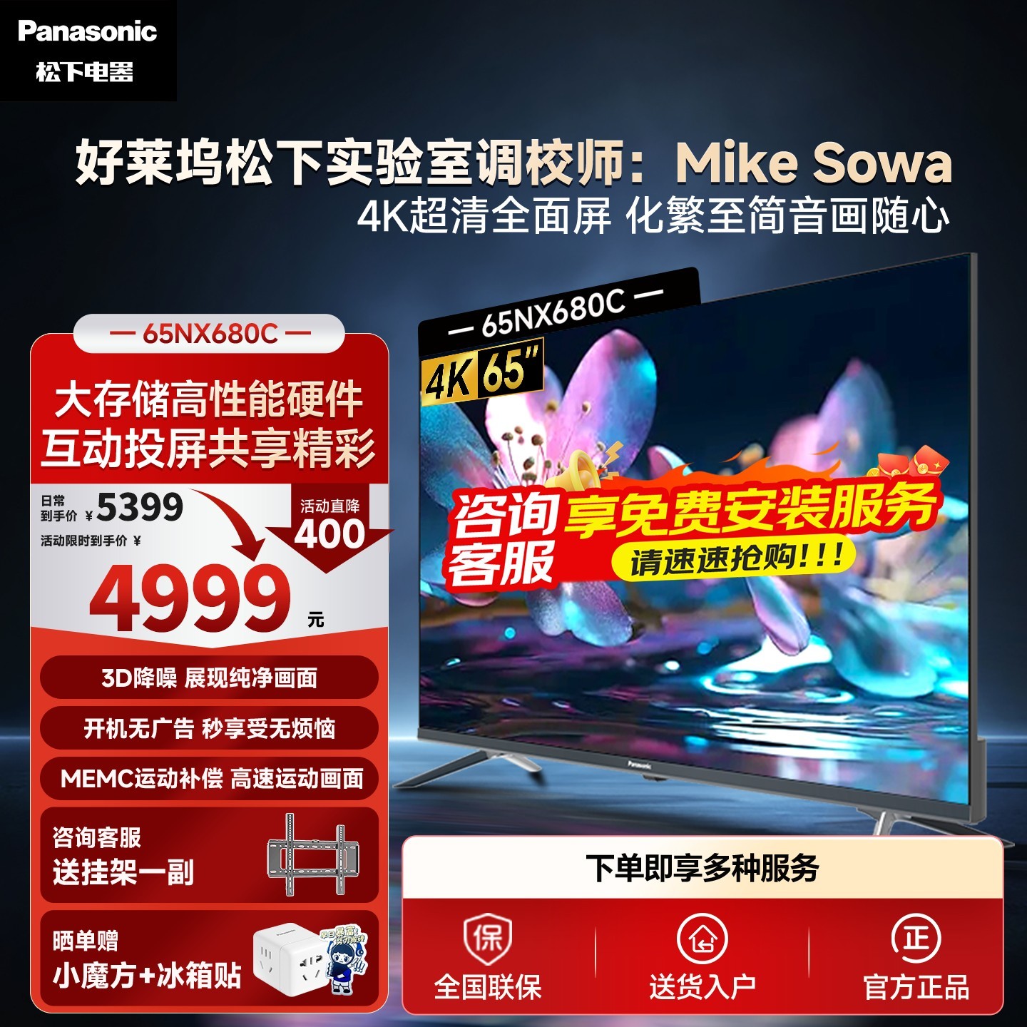 松下Panasonic 65英寸智能4K全面屏液晶平板电视机NX680,震撼来袭!搭载4K超高清分辨率,呈现细腻画质,色彩真实生动,搭配全面屏设计,视野更开阔沉浸感更强。内置智能系统,操作流畅,支持多种应用下载和语音控制,轻松畅享海量影视资源。音效出色,打造家庭影院级视听体验。