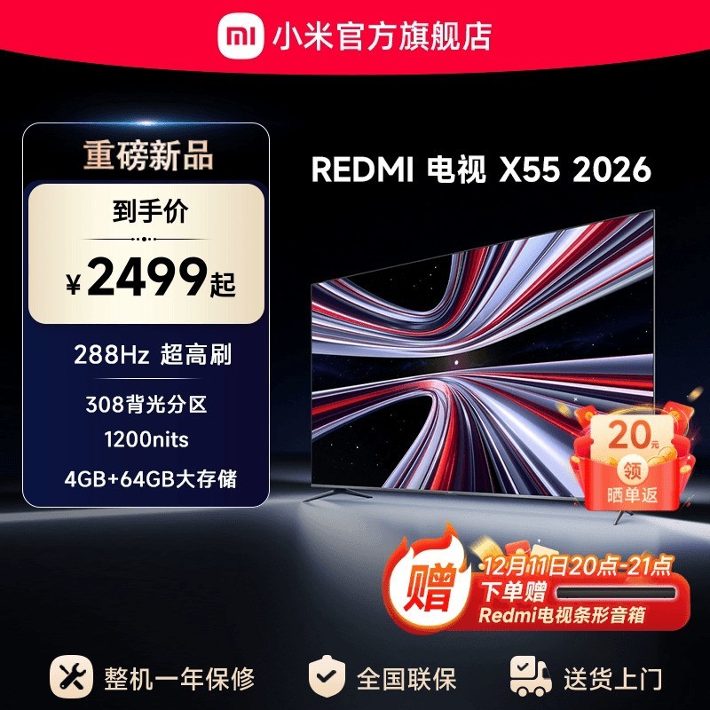 小米Xiaomi REDMI电视X55英寸搭载288Hz超高刷新率屏幕,带来流畅顺滑的视觉体验,无论是观看体育赛事还是畅玩主机游戏都能轻松应对,画面稳定无拖影;配备308个分区背光控制技术,实现精准控光,明暗有度,细节更丰富,画质更出众;4K超高清分辨率配合HDR10+动态解码,色彩还原真实,层次分明;金属全面屏设计,窄边框沉浸视野,适配多种家居风格;内置小爱同学,支持远场语音操控,动动嘴即可完成换台、调节音量、查询天气等操作,智能便捷;接口丰富,满足多种外接设备需求。