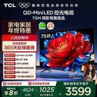 TCL 75T5M 75英寸大屏电视震撼来袭,采用先进的QD-Mini LED控光技术,实现更精准的明暗对比与细腻画质表现,搭配QLED量子点技术,色彩更丰富,画面更真实。支持288Hz超高刷新率,无论是观影还是游戏都能带来流畅顺滑的视觉体验。超薄设计融入现代家居风格,内置WiFi6确保网络连接稳定快速。