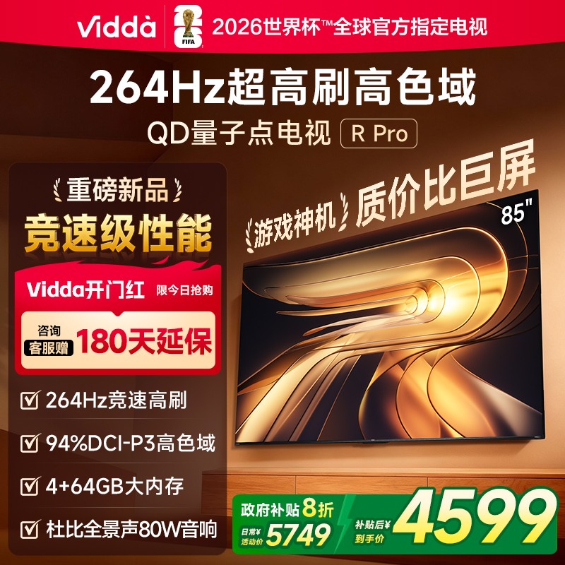 本文属于原创文章,如若转载,请注明来源:Vidda R Pro 85 英寸电视直降,低至 4599.2 元https://tv.zol.com.cn/1095/10958653.html