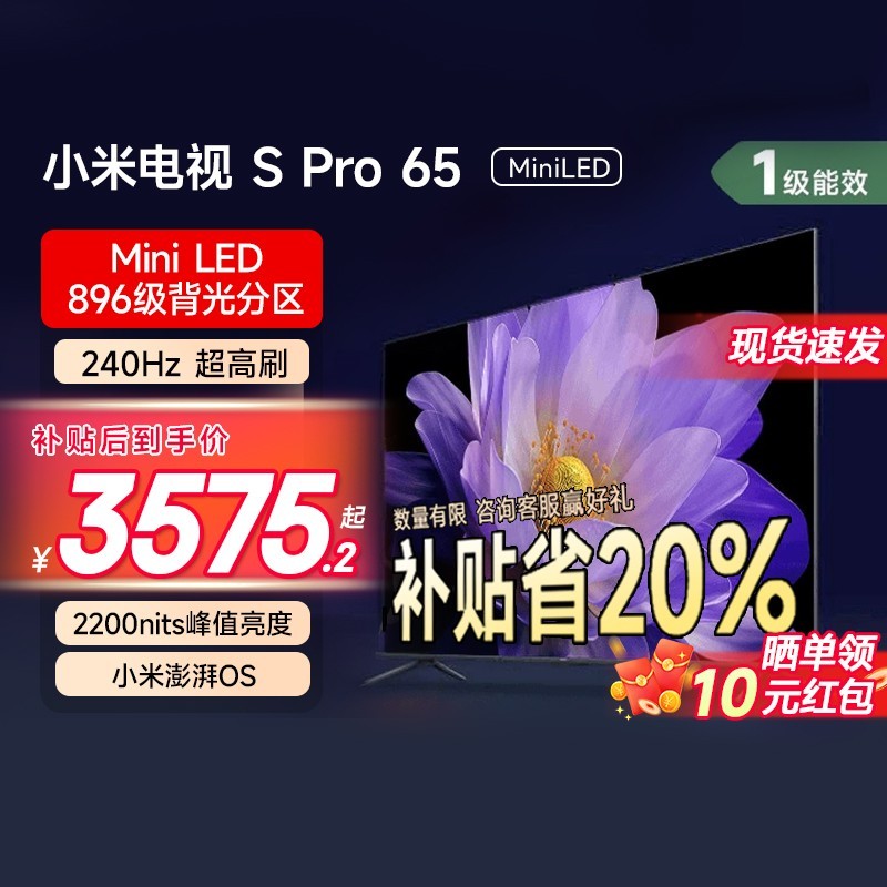 小米电视S Pro 65英寸MiniLED平板电视,搭载240Hz超高刷新率屏幕,带来流畅顺滑的视觉体验,无论是观看高速运动画面还是畅玩大型游戏都能稳定无拖影,画质表现更加出色。采用先进的MiniLED显示技术,具备高亮度、高对比度和精准控光能力,呈现丰富细节与真实色彩,沉浸感更强。支持多种智能交互功能,运行流畅,音画表现全面升级,打造家庭影院级享受。