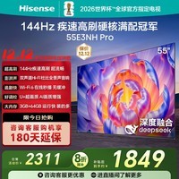 Hisense 55E3NH-PRO 55英寸4K液晶电视,画质清晰细腻,支持4K超高清分辨率,带来影院级视觉享受,色彩还原真实,画面细节丰富,搭载高性能处理器,运行流畅不卡顿,智能系统操作便捷,轻松畅享海量影视资源,无论是观影、追剧还是游戏娱乐都能轻松胜任,轻薄机身设计,美观大方,节省空间。目前京东秒杀价2311元,叠加国补8折优惠,到手价仅需1840.8元,性价比出众,近期好价不容错过,赶紧入手享受超值视听体验。