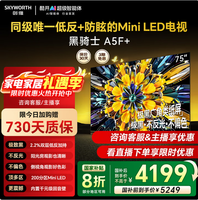 想换一台大屏电视的朋友别错过!创维黑骑士系列75A5F Mini液晶电视,拥有75英寸大屏幕,具备4K画质。