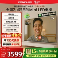 康佳电视75G10 75英寸智能平板液晶电视机,搭载惊鸿AI画质芯片与低反屏技术,采用MiniLED背光及504分区精准控光,画质细腻通透、明暗有致,观影沉浸感十足;现京东活动价3999元,叠加15%补贴立减及PLUS会员立减15.06元,下单1件实付仅3186.6元,性价比出众,品质大屏轻松入手。