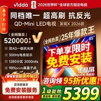 Vidda发现X 2026款 85英寸 300Hz超高刷 墨晶屏 QD-Mini LED 以旧换新家电国家补贴电液晶电视85VX5Q 85英寸 【咨询领优惠】